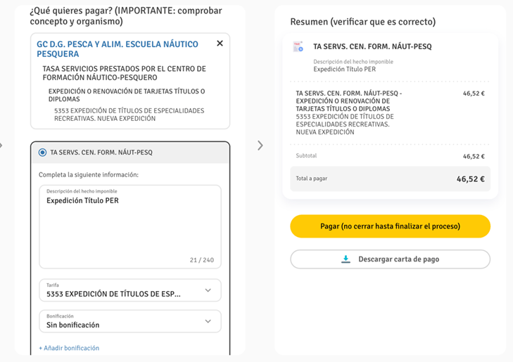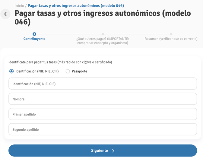 Pasos para pagar las tasas: