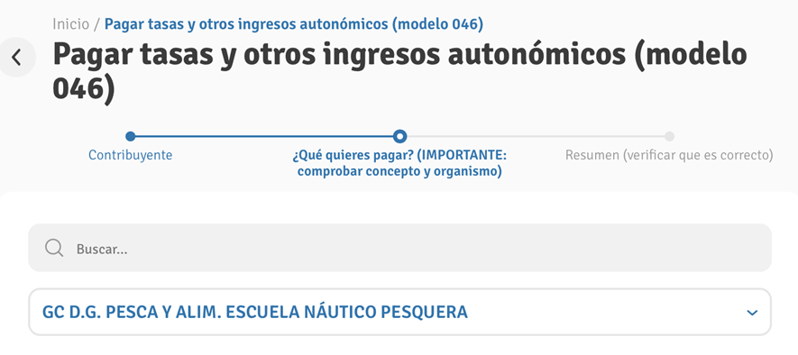 2. Cumplimentar datos solicitados. Desplegar “GC D.G.PESCA Y ALIM.ESCUELA NÁUTIC PESQUERA”