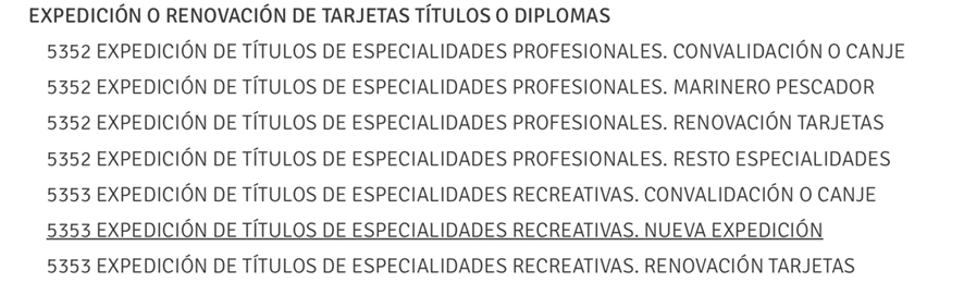 3. (5353) Expedición de títulos de especialidades recreativas. Nueva expedición.